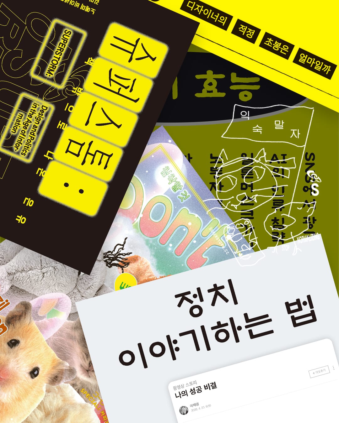 이제는 이미지들 간의 전쟁이 아니라 “이미지를 산업적 속도로 생산하고 퍼뜨리는 시스템들 사이의 전쟁”이라고 노에미는 말했다. 북페어에 나간 슈퍼스톰과 오늘의풍경은 어떤 시스템으로 그 전쟁에 참전한 것일까? 우리는 DIY 식의 웹개발과, zine 만들기라는 비산업적 태도(물론 청계천 을지로의 인쇄 산업에 기댄)와 상호적 대화모임을 통해 메시지를 생산하고, 인스타그램, 트위터와 같은 SNS를 매개로 한 이미지 확산 플랫폼을 활용해 메시지를 배포하고, 북페어 시장에 책 사러 온 사람들에게 판매라는 이름의 후원을 받았다. 우리의 시스템은 선형적인 이미지 기획 시스템이나, 동시다발적인 이미지 대량 생산 시스템에 비해, 우연이 대단히 많이 개입하고, 서로 만날 일 없을 것 같은 시장과 생산자들, 독자들을 연결하는 예측 불가능하고 이상한 연결들 그 자체라고 할 수 있다. 그리고 시장을 독점한 거대 테크 기업 플랫폼들의 비밀스러운 알고리즘에 대항하는 한 가지 방법은 그들을 보이코트 하는 게 아니라 그들이 예측하거나 이해할 수 없는 방식의 행위자가 되는 것일 수도 있다.